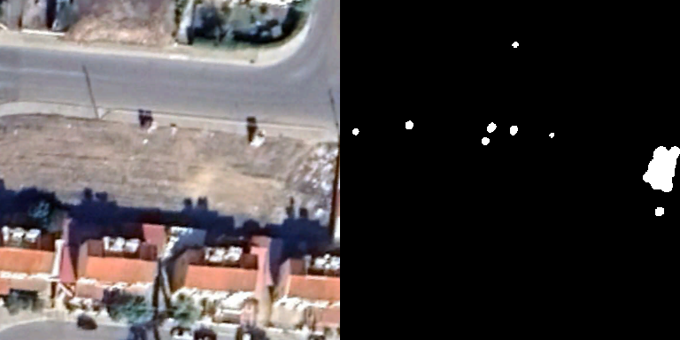 The model achieves a precision of 85% and a recall of 90%. Concretely, this means that only 10% of the actual (ground-truth) dumping area is not flagged as dumping and 15% of the flagged area is not actually dumping. We have to note that the results refer to dumping area detection, not dumping site detection. This suggests that dumping sites may be detected by the model, but their size may sometimes be over- or under-estimated. In fact, the recall and precision of detecting whether any dumping is found in an image, ignoring the accuracy of its size estimation, are 96% and 92%, respectively.